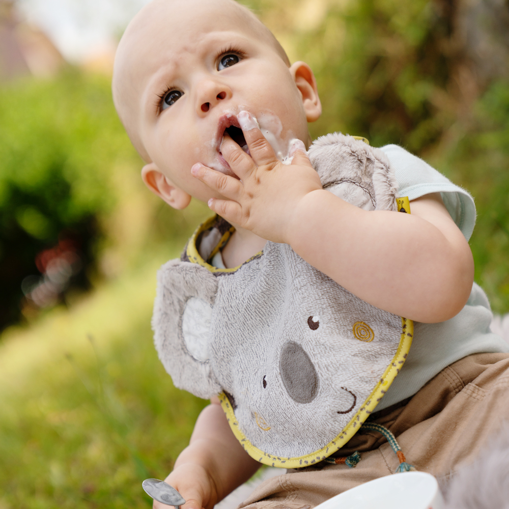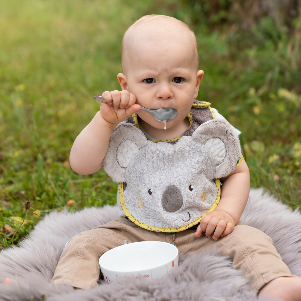 Mit dem praktischen Klett-Lätzchen Koala von Baby Fehn darf beim Essen auch mal was daneben gehen. Dank dem Klettverschluss im Nacken lässt sich das Lätzchen leicht anlegen und abnehmen.