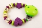 Preview: Schnullerkette mit Name "Tupfenherz&Stern" in lemon/pflaume