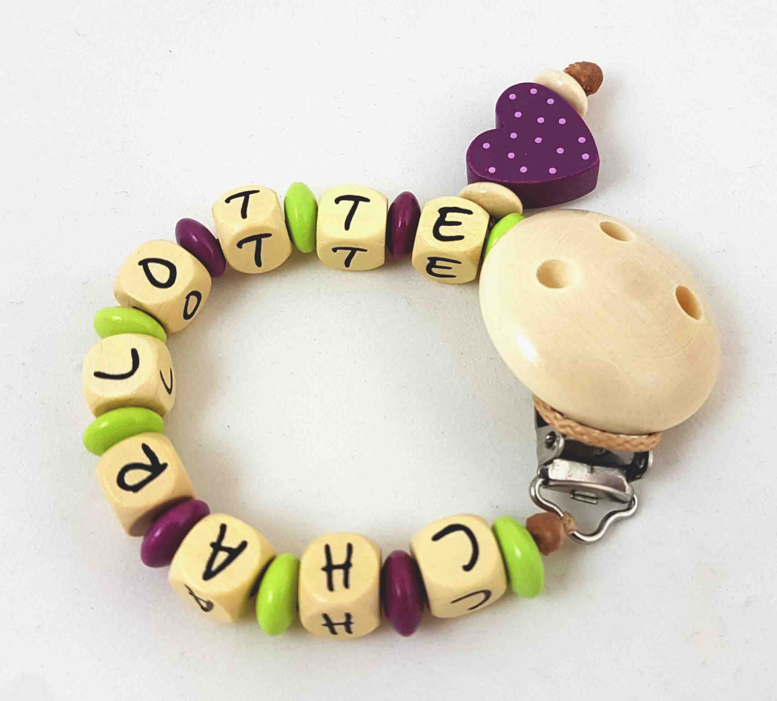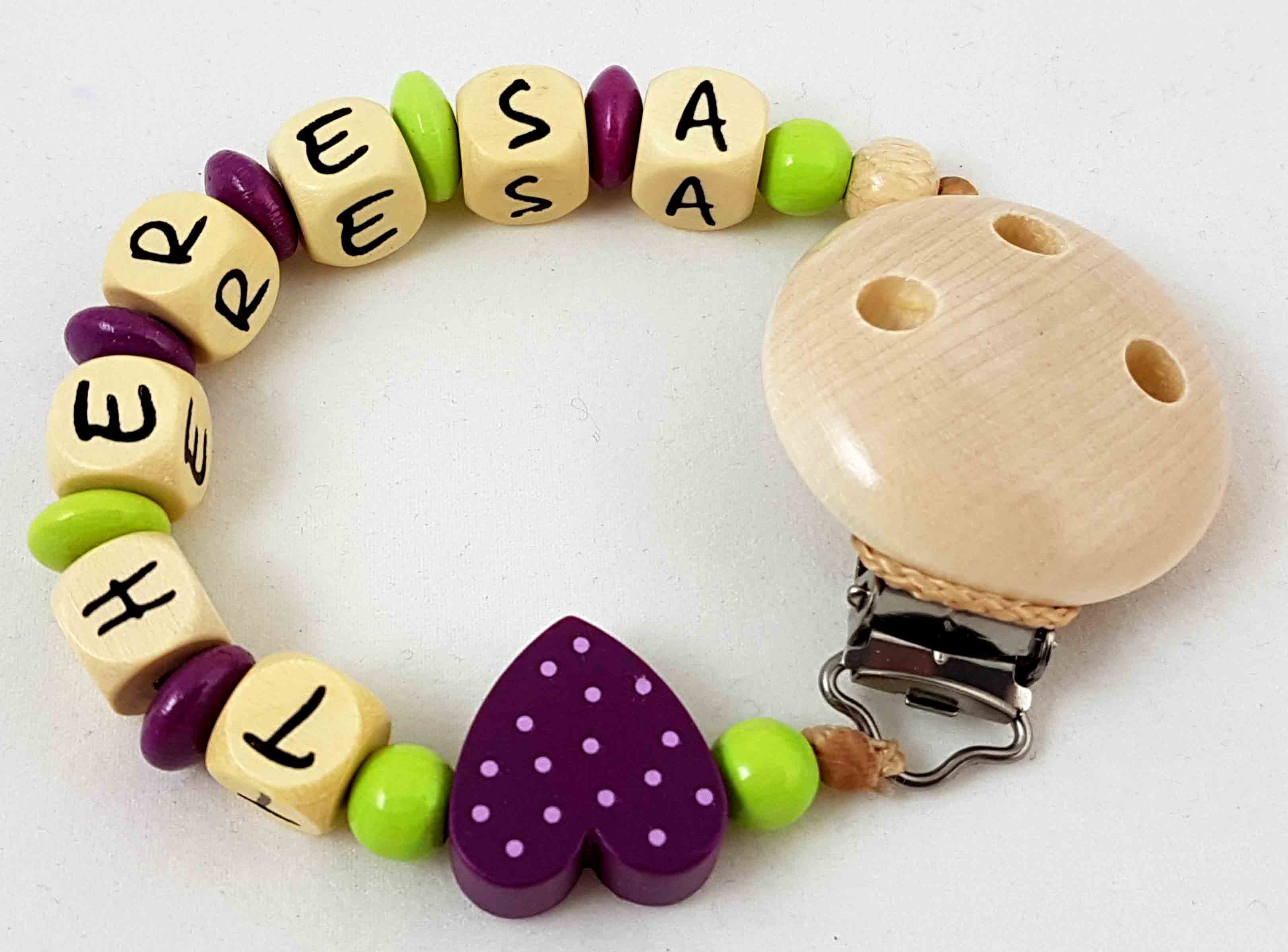 Schnullerkette mit Namen ist ein süßes Geschenk zur Geburt, Taufe oder einfach nur als Mitbringsel.