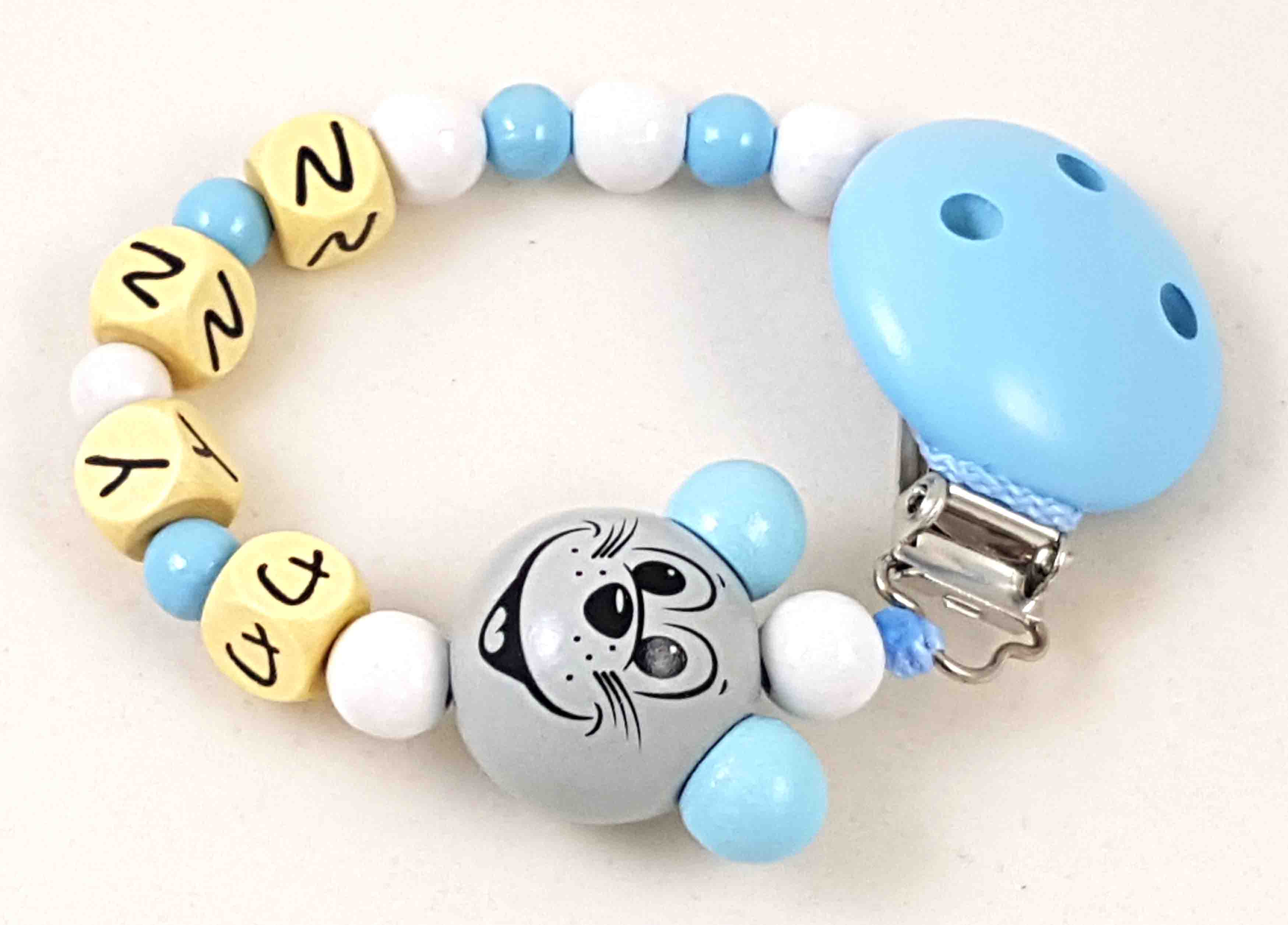 Schnullerkette mit Namen ist ein süßes Geschenk zur Geburt, Taufe oder einfach nur als Mitbringsel.