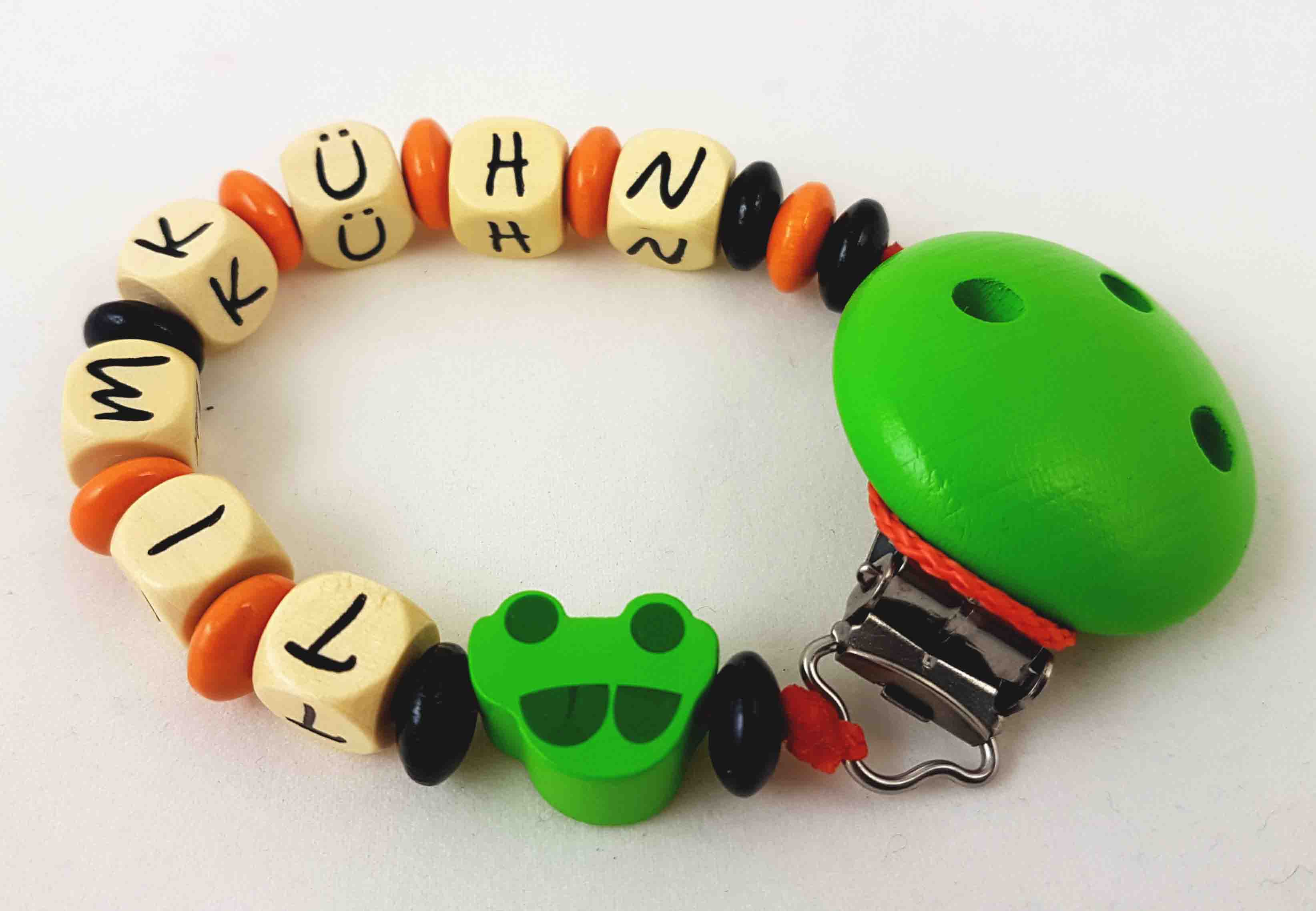 Mobile Preview: Schnullerkette mit Name "Auto" orange/schwarz