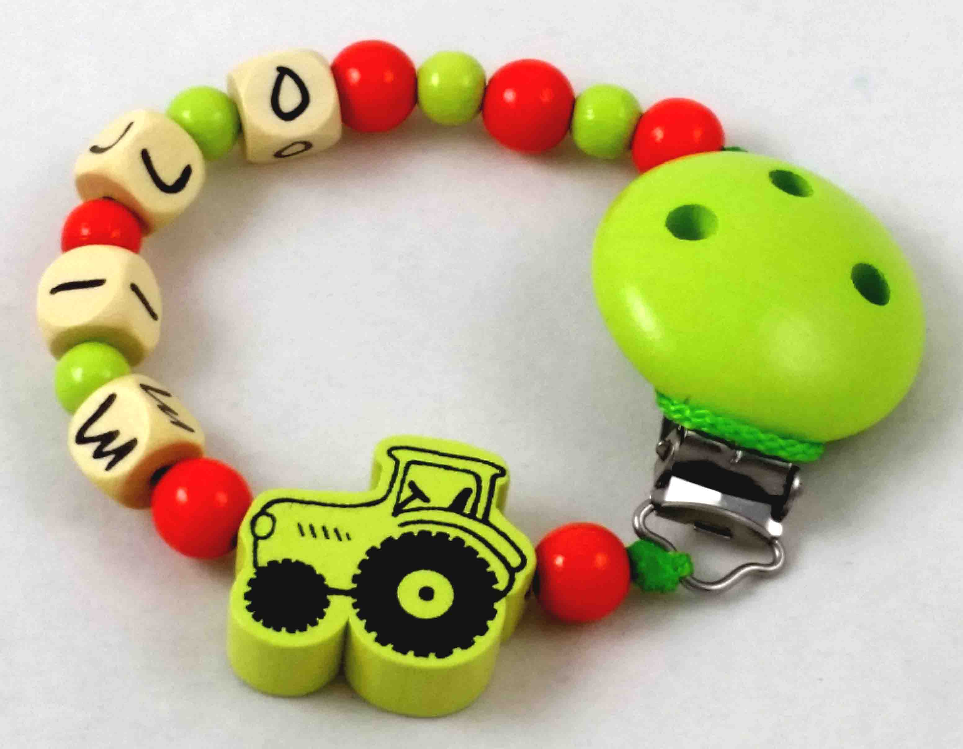 Schnullerkette mit Name "Traktor" in lemon/orange