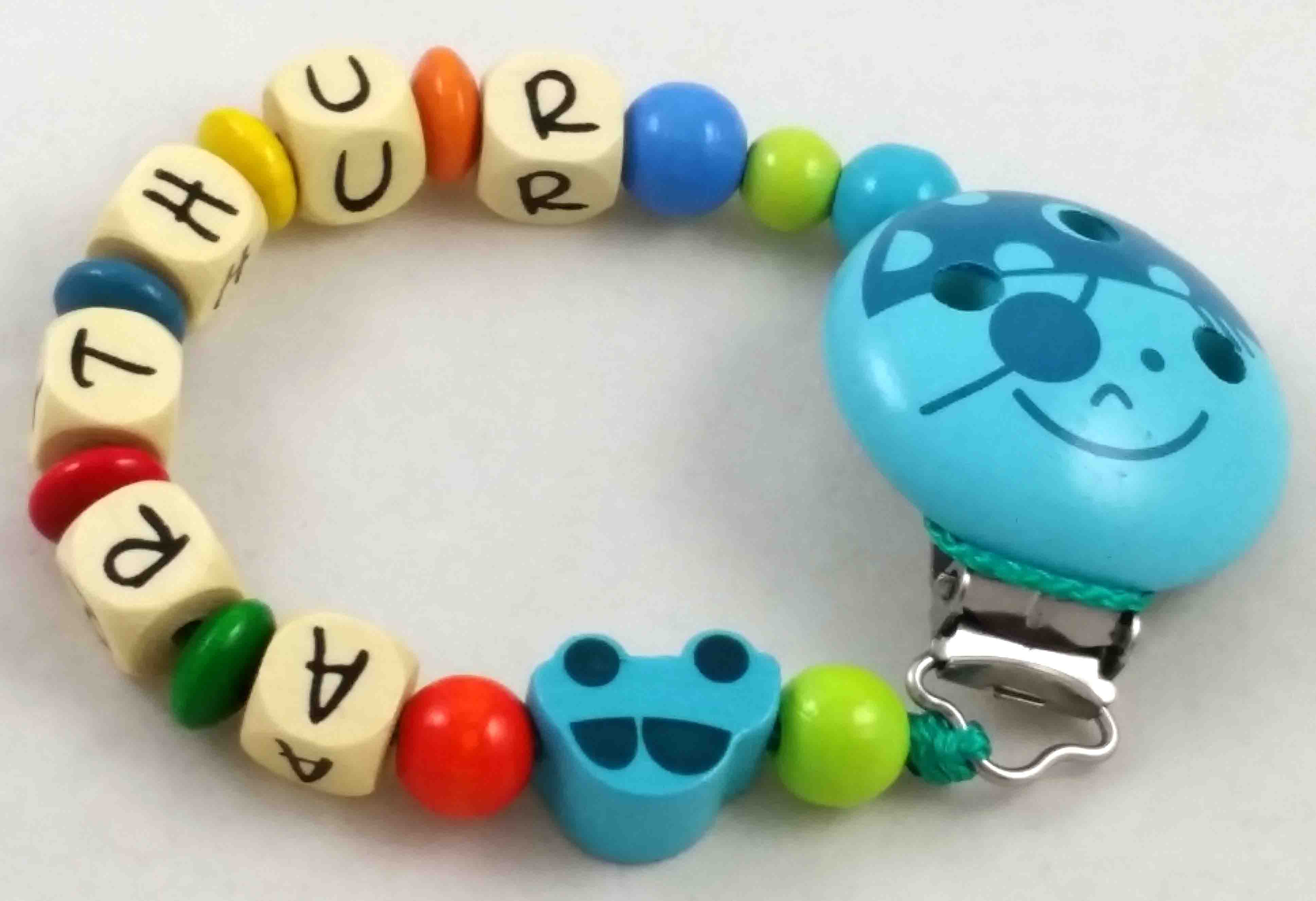 Schnullerkette bunte Perlen mit Fädelmotiv Auto mint-petrol