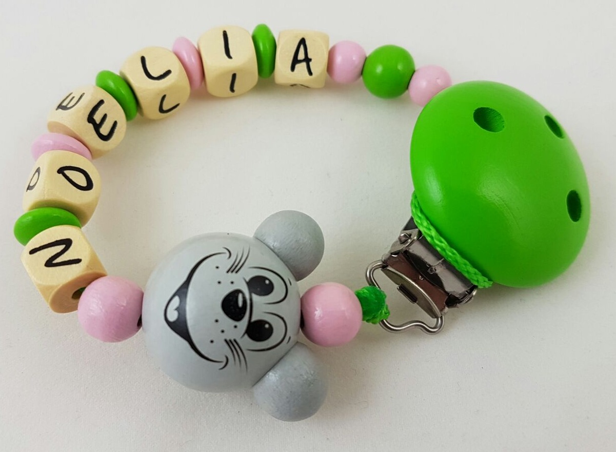 Schnullerkette mit Namen ist ein süßes Geschenk zur Geburt, Taufe oder einfach nur als Mitbringsel.