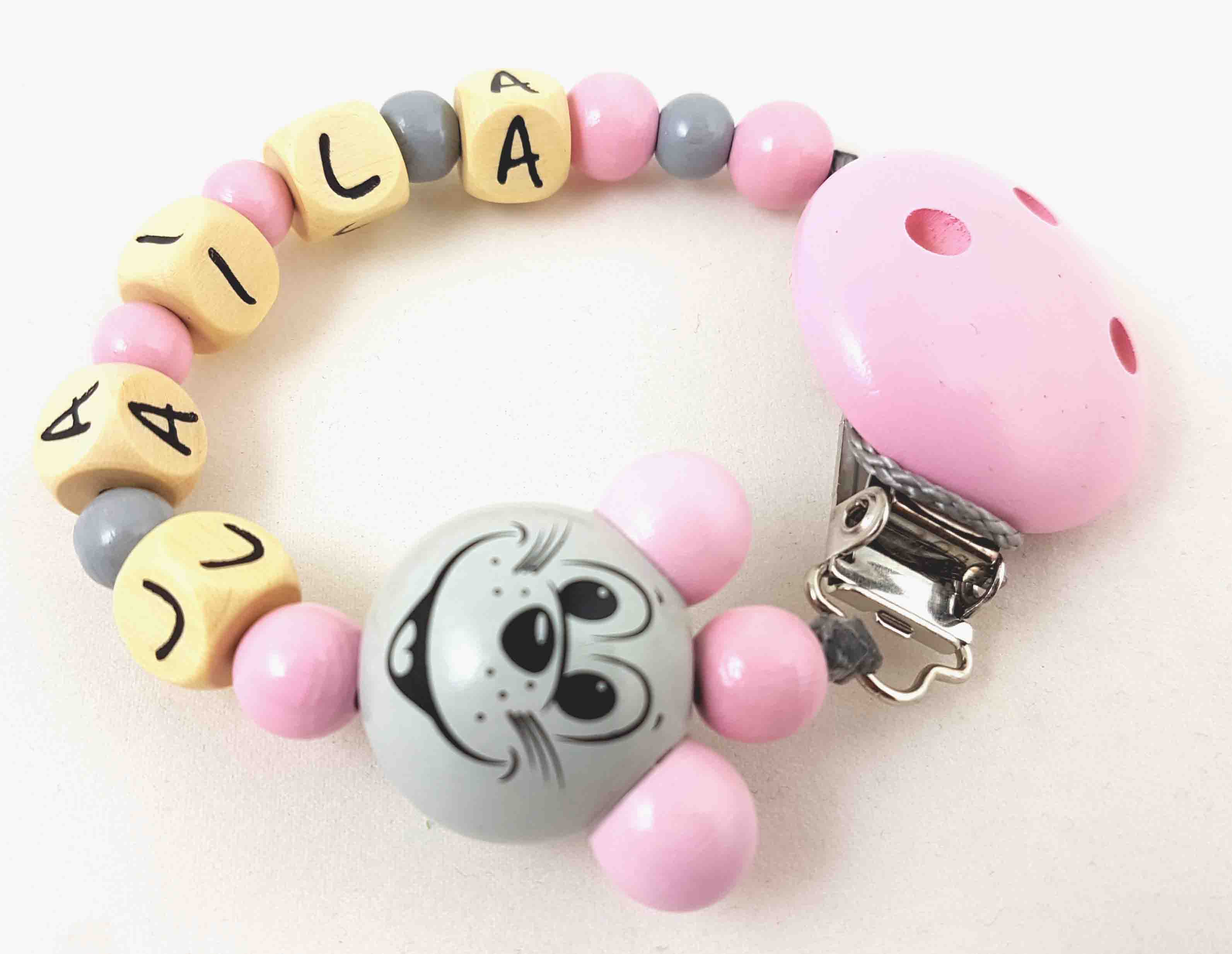 Schnullerkette mit Namen ist ein süßes Geschenk zur Geburt, Taufe oder einfach nur als Mitbringsel.