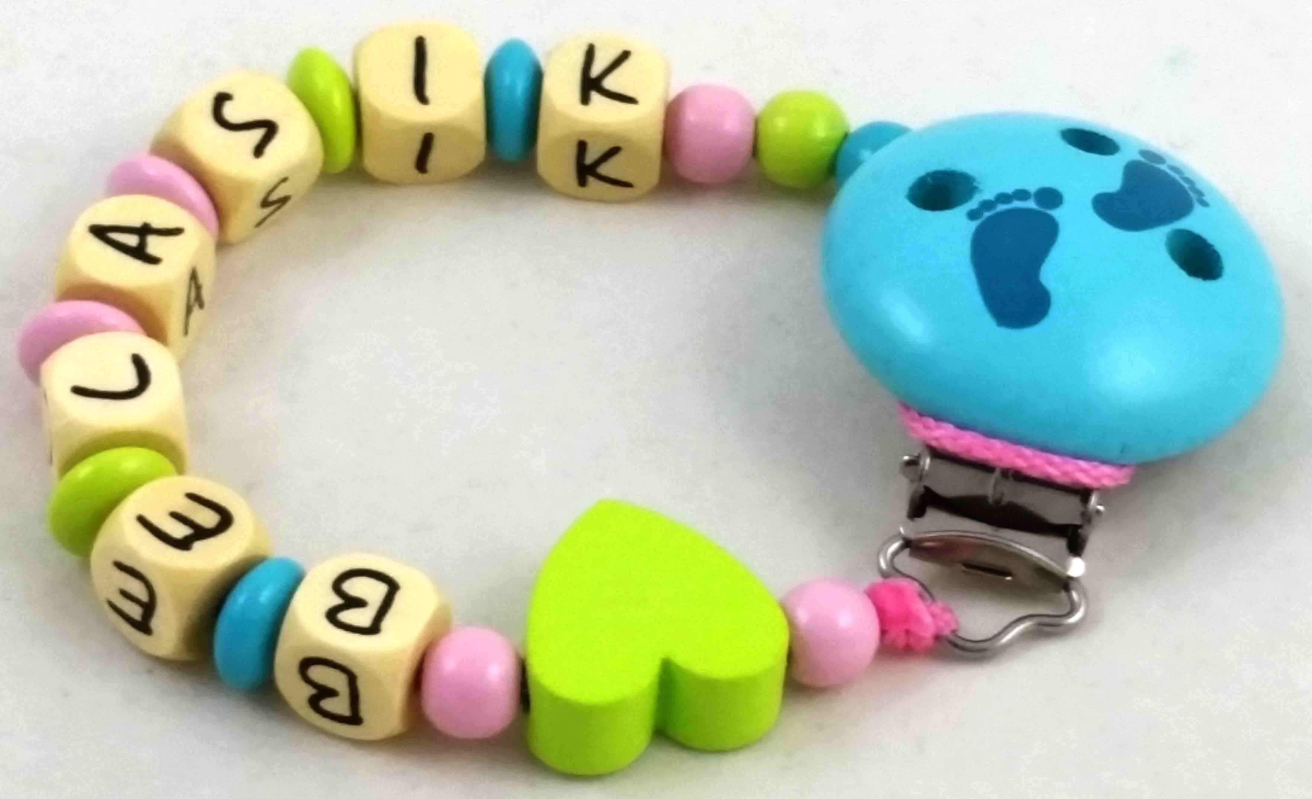 Schnullerkette mit Name "Herz" in babyrosa/lemon/mint