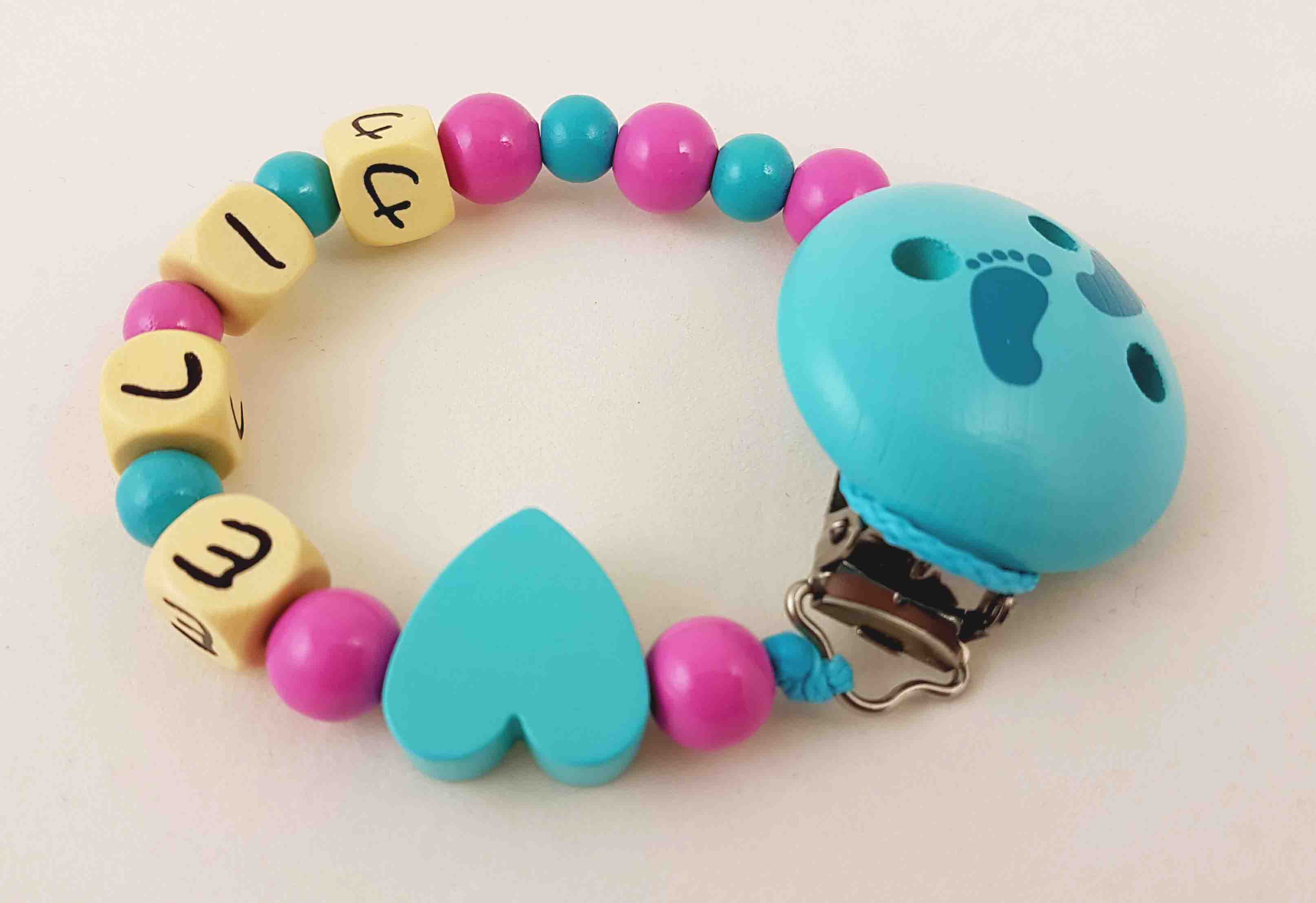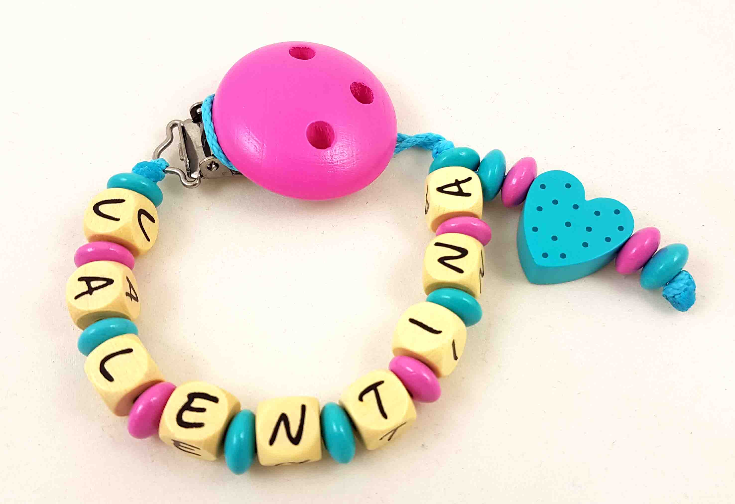 Preview: Schnullerkette mit Name "Herz" in mint/pink