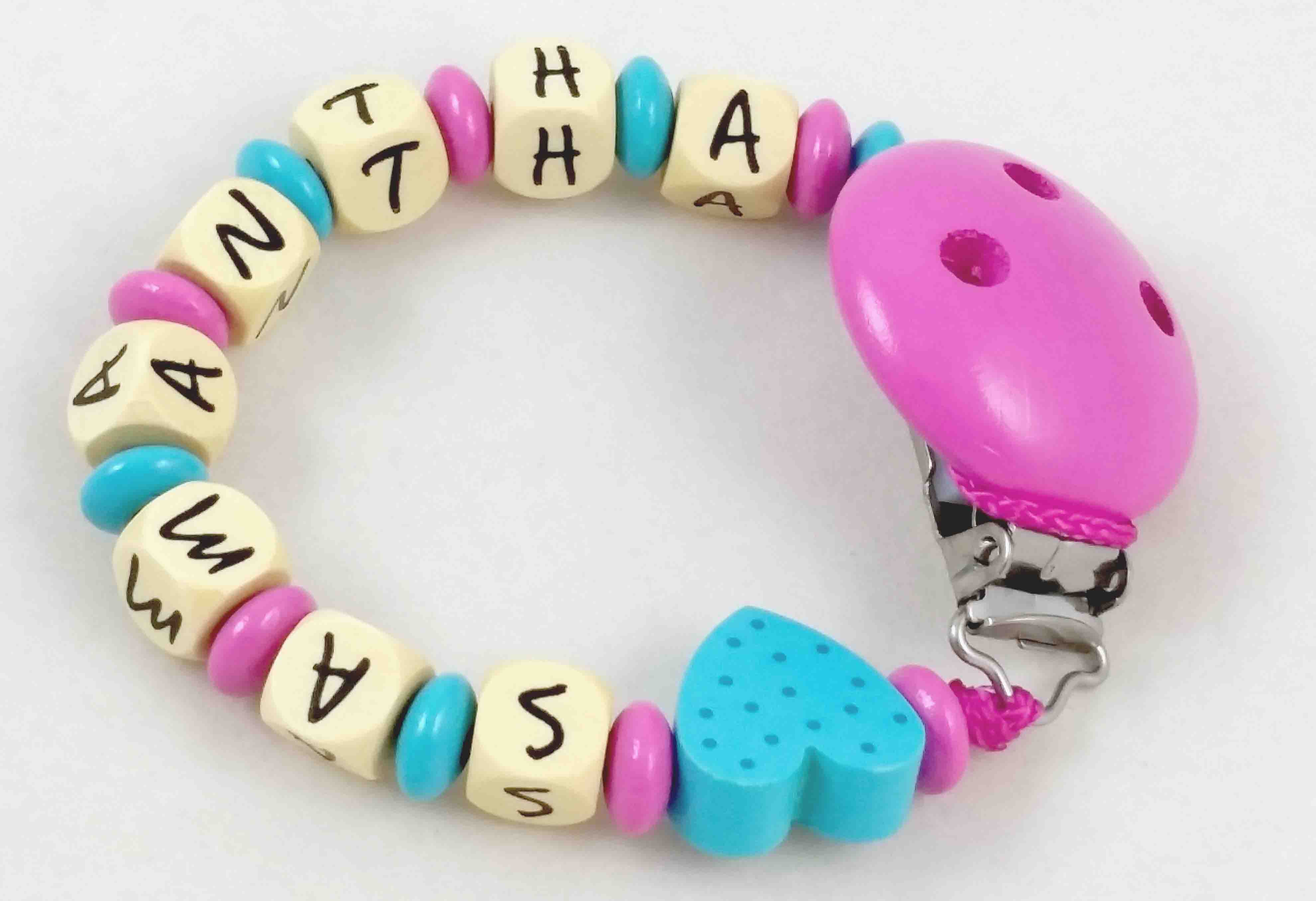 Mobile Preview: Schnullerkette mit Name "Herz" in mint/pink