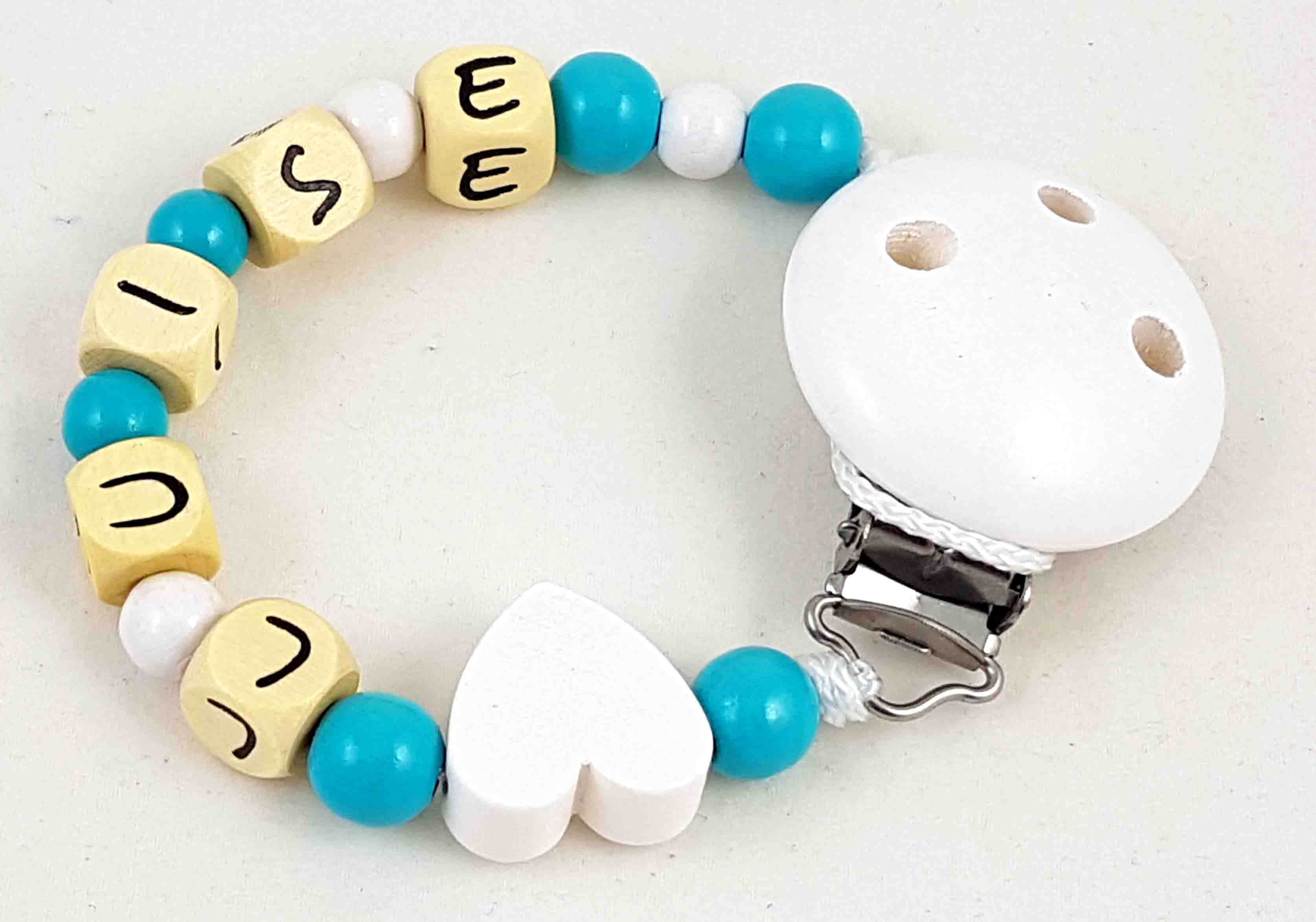Schnullerkette mit Namen ist ein süßes Geschenk zur Geburt, Taufe oder einfach nur als Mitbringsel.
